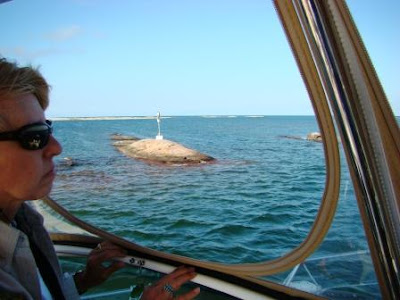 We're done with locks and now head for the narrow entrence to Georgian Bay past Potato Island.